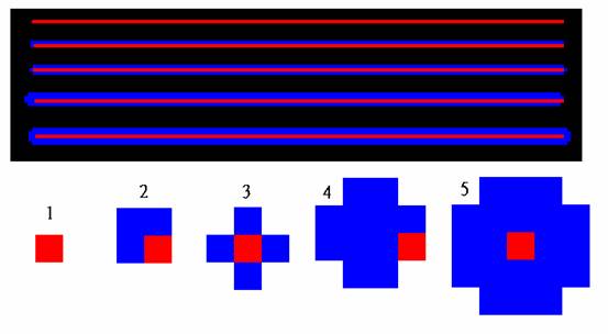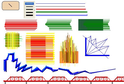 請壓著「shift」按鍵,畫出各樣粗細且顏色不同的水平、垂直線條,讓他們如此縱橫交錯。